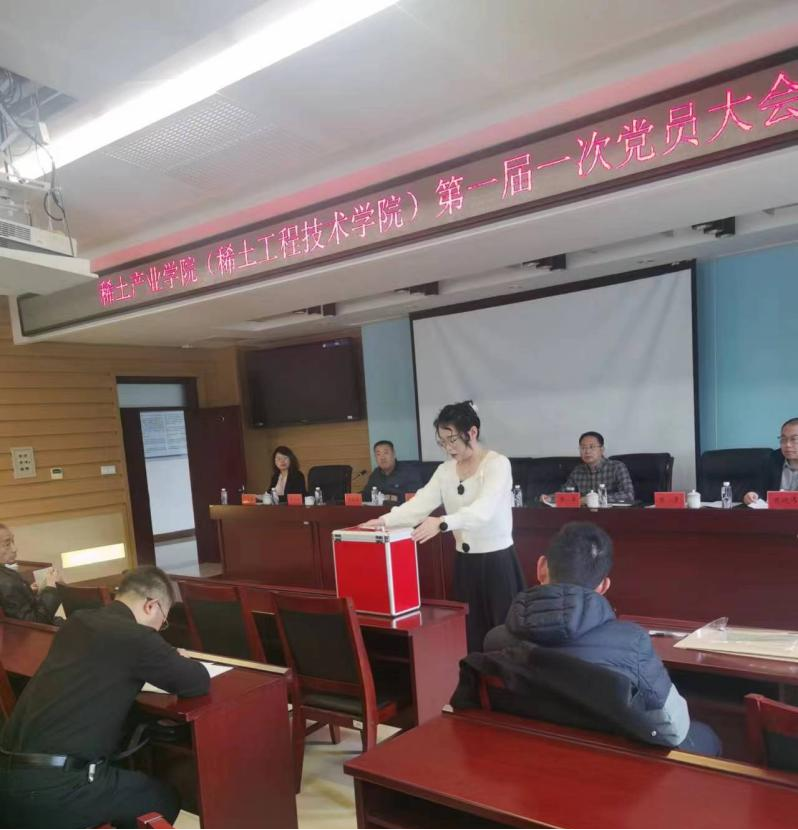 大会审议通过了公司党总支委员选举办法、委员候选人名单、监票人和计票人名单。按照选举规定和程序,以无记名投票、差额选举的方式,选举产生了稀土产业公司(稀土工程技术公司)第一届党总支委员,并进行了党总支委员会第一次全体会议,选举产生了党总支负责人。