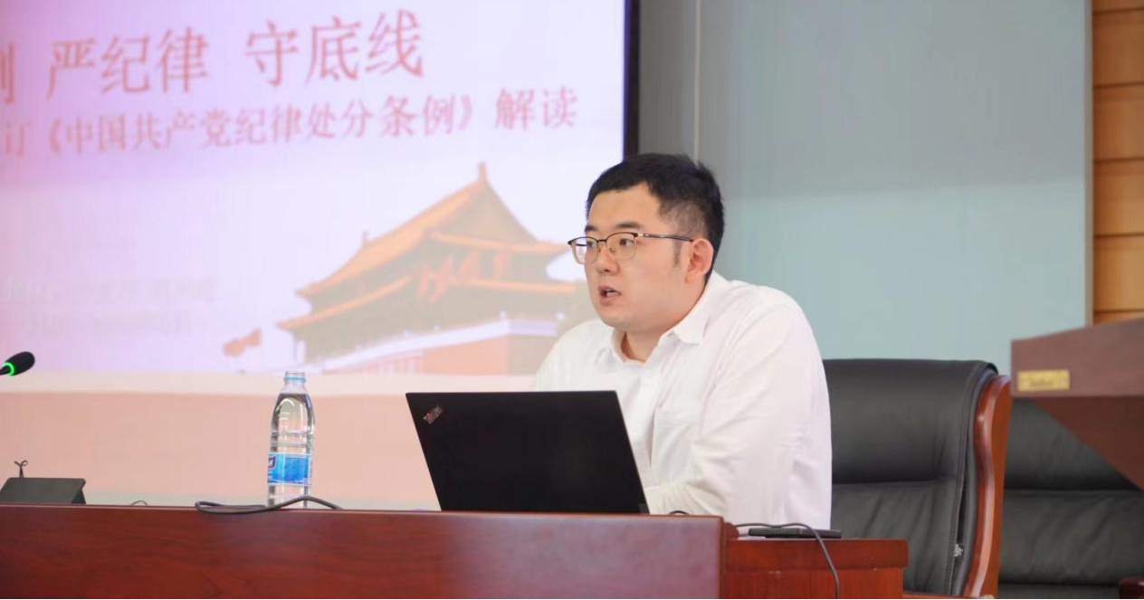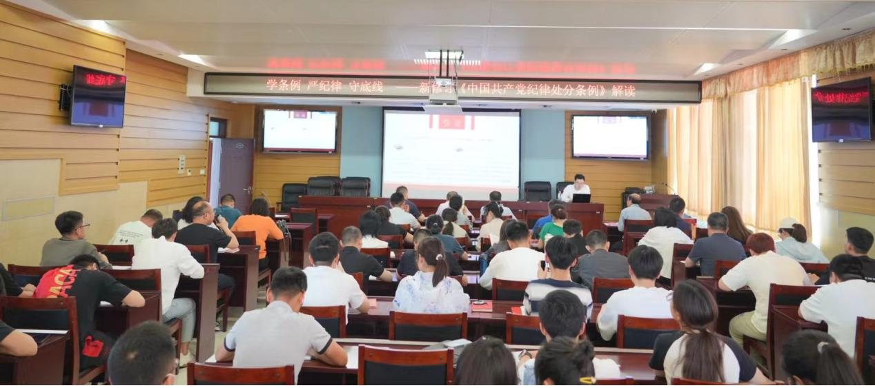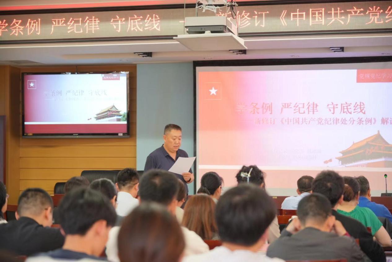 郑老师对照新旧《中国共产党纪律处分条例》文本,从总体要求和适用范围,对违反组织纪律、廉洁纪律、群众纪律、工作纪律、生活纪律行为处分规定等内容对新条例进行详细讲解。郑老师“以案为鉴、以案说规”,使广大党员同志进一步认识到纪律要求不仅体现在工作中,更要自觉地将纪律要求内化于心、外化于行,贯穿到自己日常生活的方方面面。