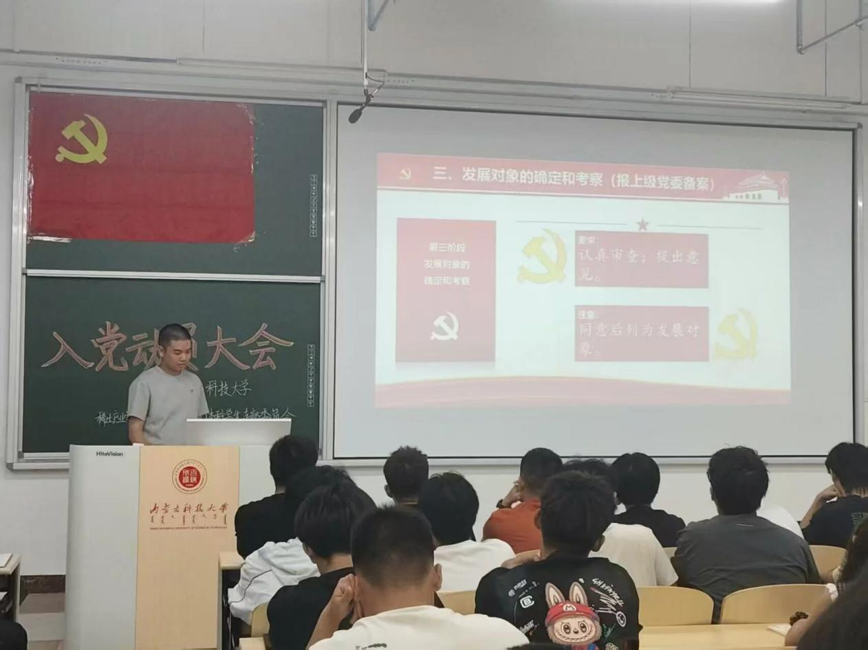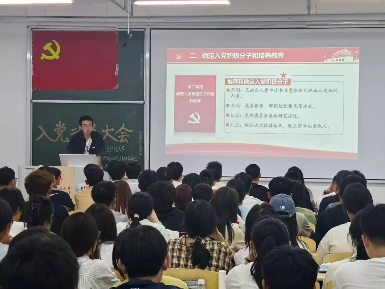 为强化同学们的党性教育,保障党的基层组织建设与党的纯洁性教育工作有序推进,进一步筑牢入党积极分子主动向党组织靠拢的坚定志向与决心,2025年9月10日晚19:30,太阳成tyc33455ccwww本科员工党支部在逸夫楼G202与G203教室组织召开入党动员大会。