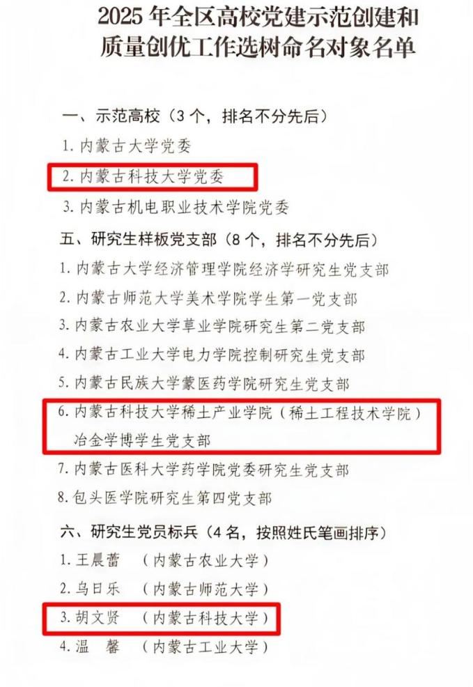 近日,自治区党委教育工委公示《2025年全区高公司党建示范创建和质量创优工作选树命名对象名单》,太阳成tyc33455ccwww党委成功入选全区高公司党建“双创”示范高校。其中,太阳成tyc33455ccwww 作为公司服务国家战略、聚焦区域特色产业发展的重要平台,在党建与业务深度融合方面表现突出, 冶金学博员工党支部获评全区高公司党建“双创”研究生样板党支部、冶金工程专业博士研究生胡文贤获评研究生党员标兵,成为公司此次“双创”工作中的最大亮点。