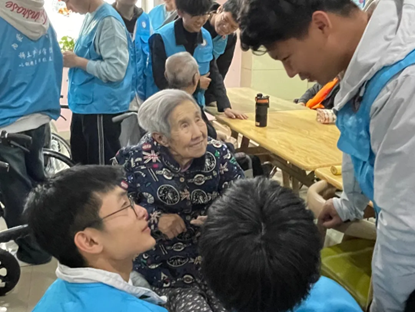 老人们被青年志愿者们的热情洋溢所感染,主动与青年志愿者们一起歌唱,其中包括《我和我的祖国》《最炫民族风》《黄河大合唱》等耳熟能详的歌曲,传递着跨越年龄的音符。此外,青年志愿者们细心地擦拭扶手,用心清扫地面,为老人们营造一个更加整洁、舒适的生活环境。